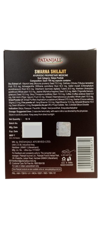 Nutritive & Nourishing (Paushtik): Patanjali Swarna Shilajit Capsule is rich